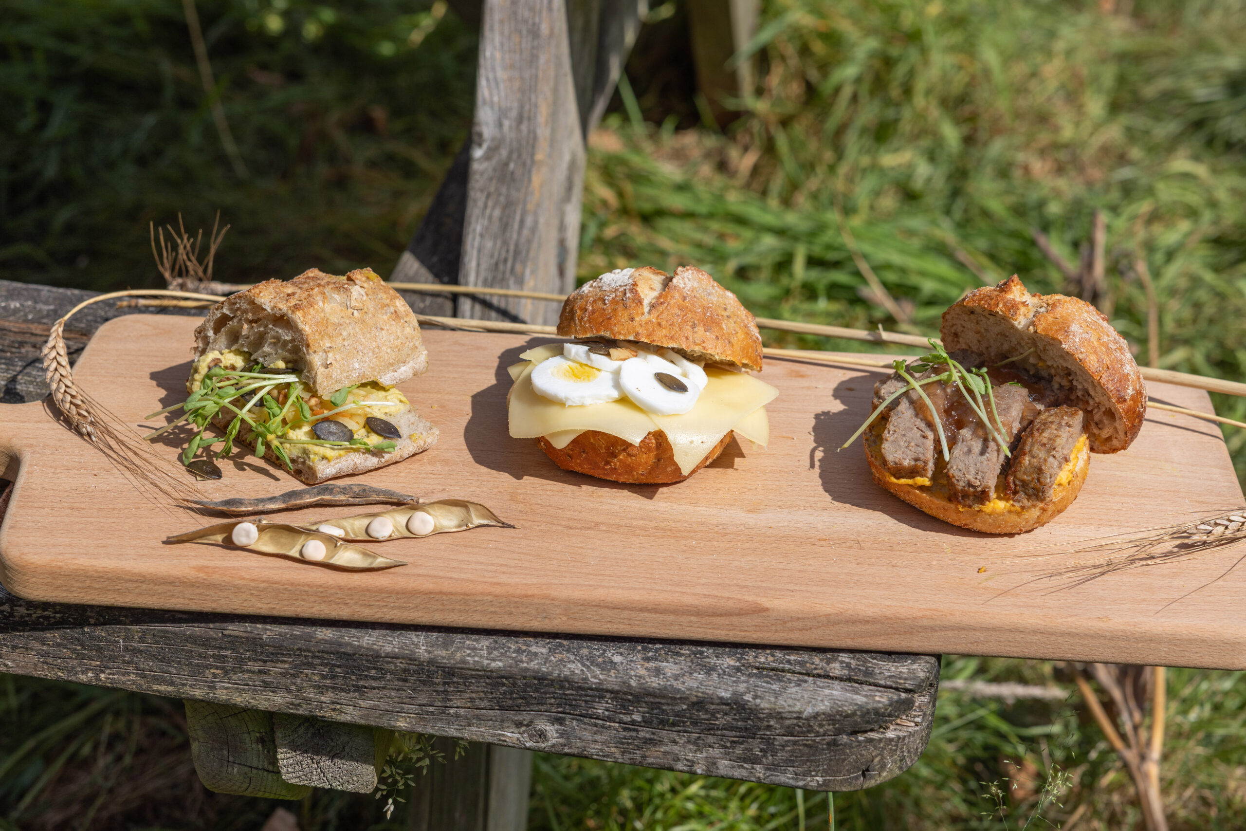 Broodje Kaas | Bierbol bolletje van Mekx Brood uit Bennekom – gemaakt van natuurinclusief graan van Graangeluk en bierbostel van Stadsbrouwerij Wageningen – met biologische Nederlandse kaas, gekookt ei (Ons ei – bio), mosterd van De Hemel en een walnoot-pompoenpittenmix van Veld 4 en Burgerboerderij De Patrijs.